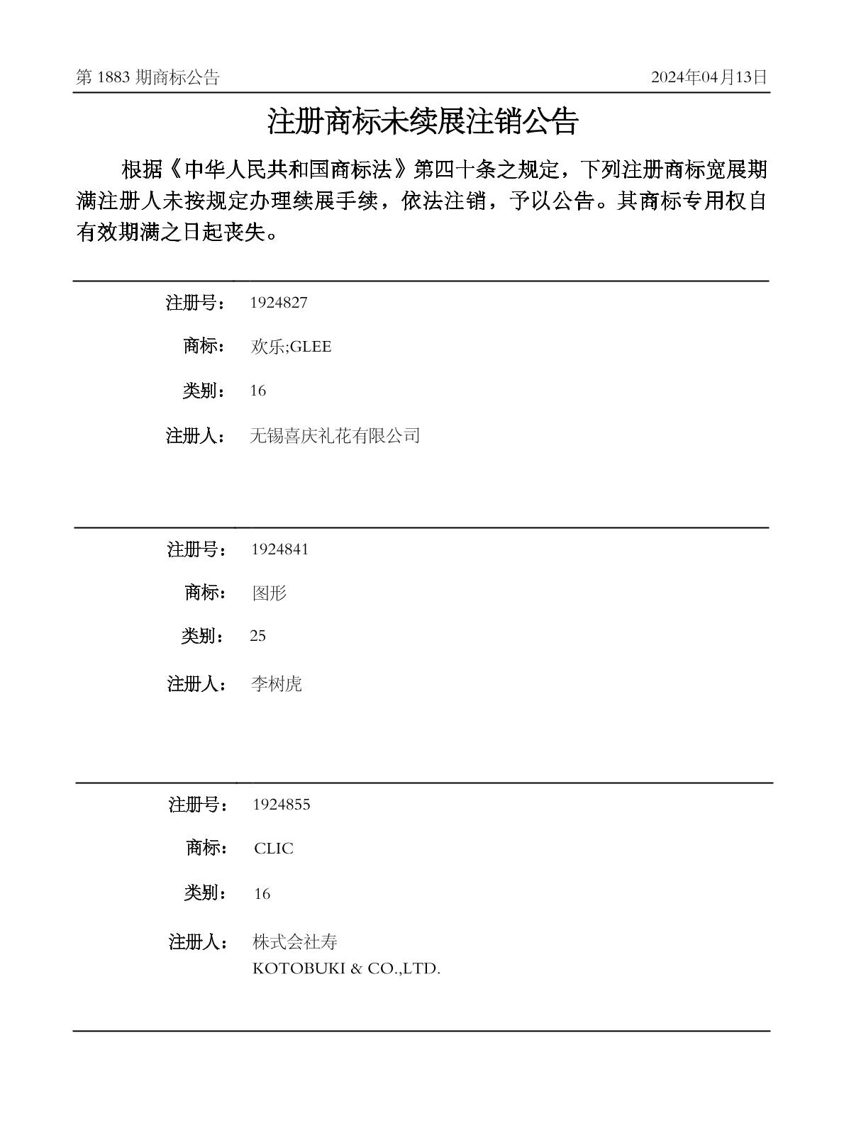 商标公告