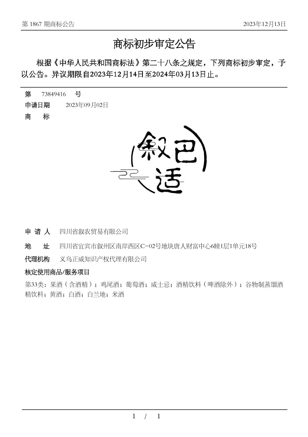 商标分类:33类 酒