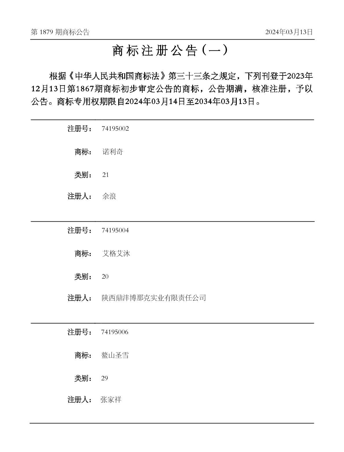 商标公告