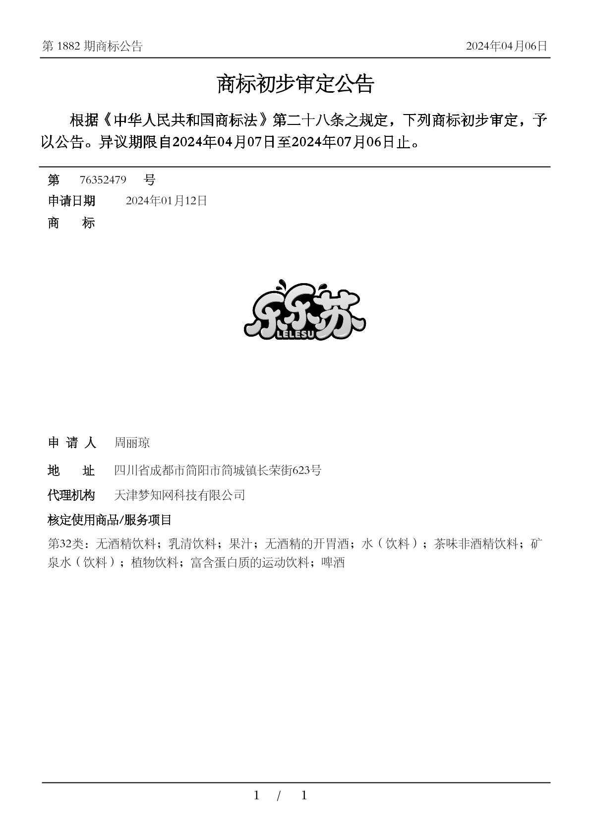 商标分类:32类 啤酒饮料