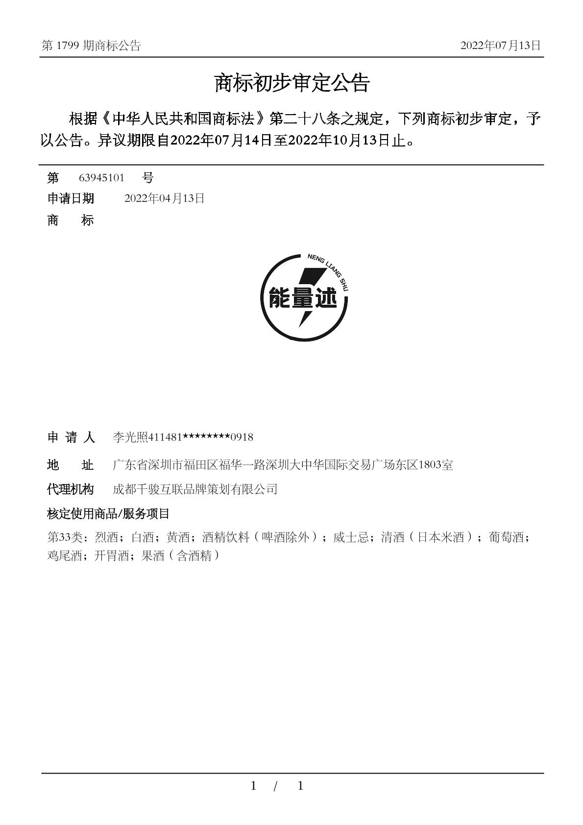 商标分类:33类 酒