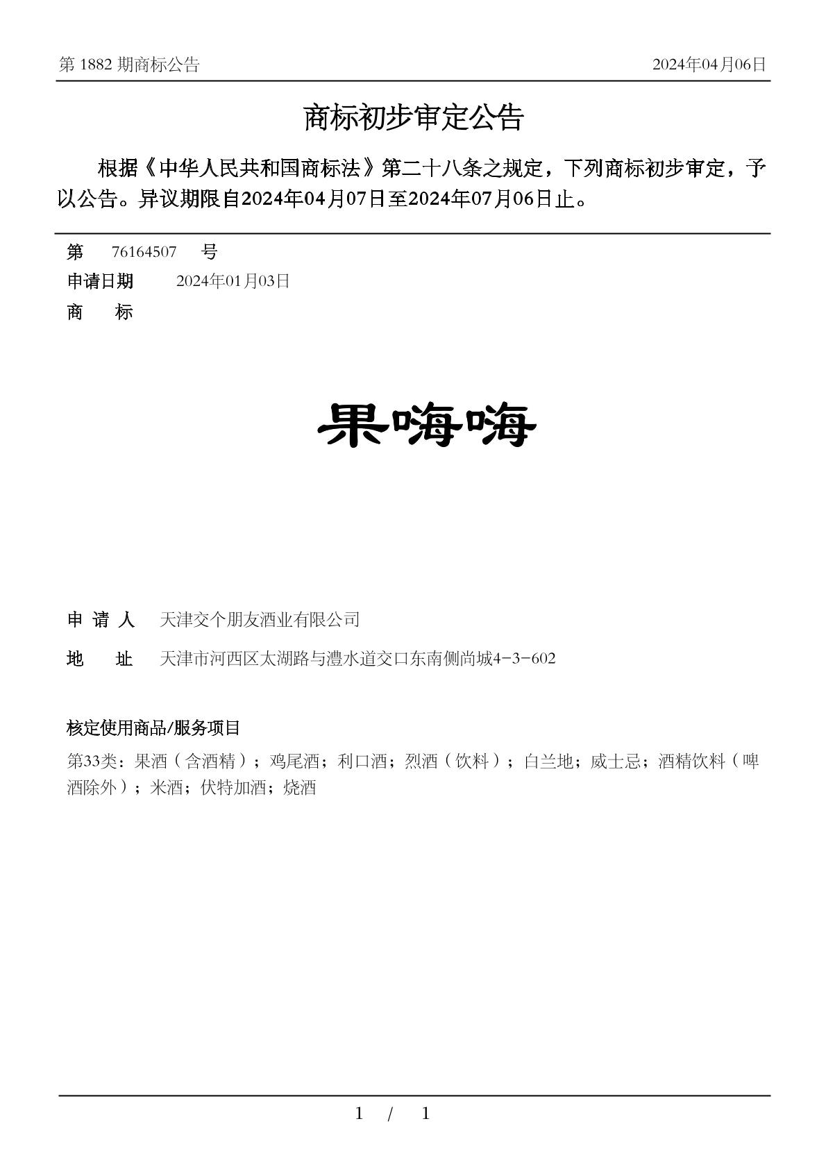 商标分类:33类 酒