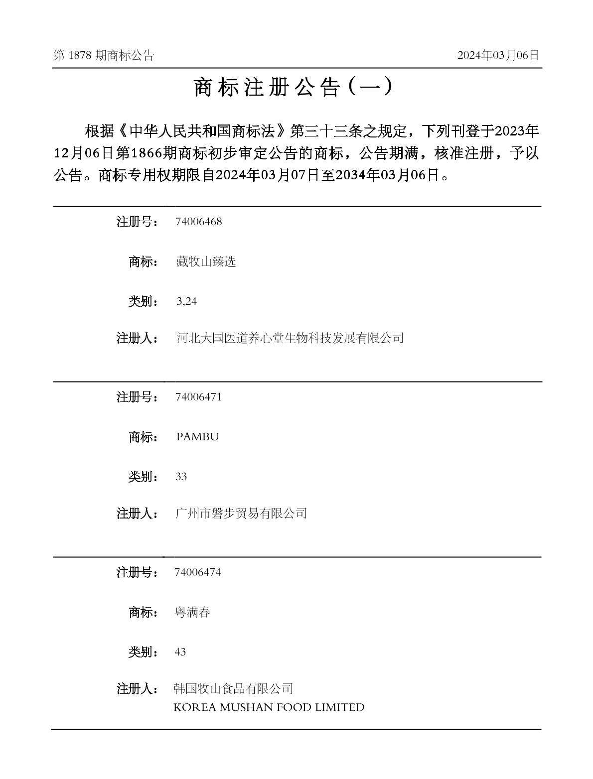 商标公告