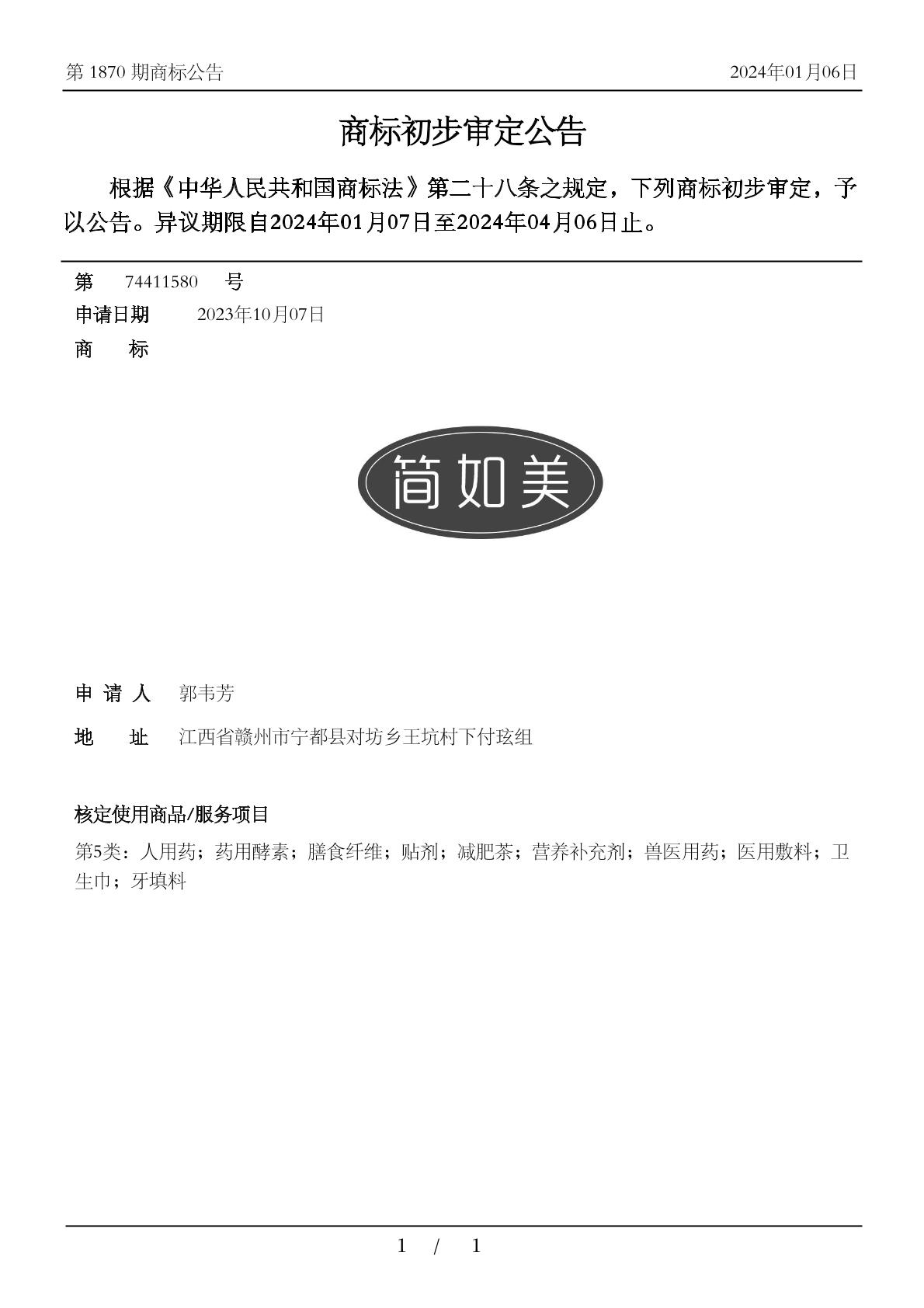 申请号:74354023