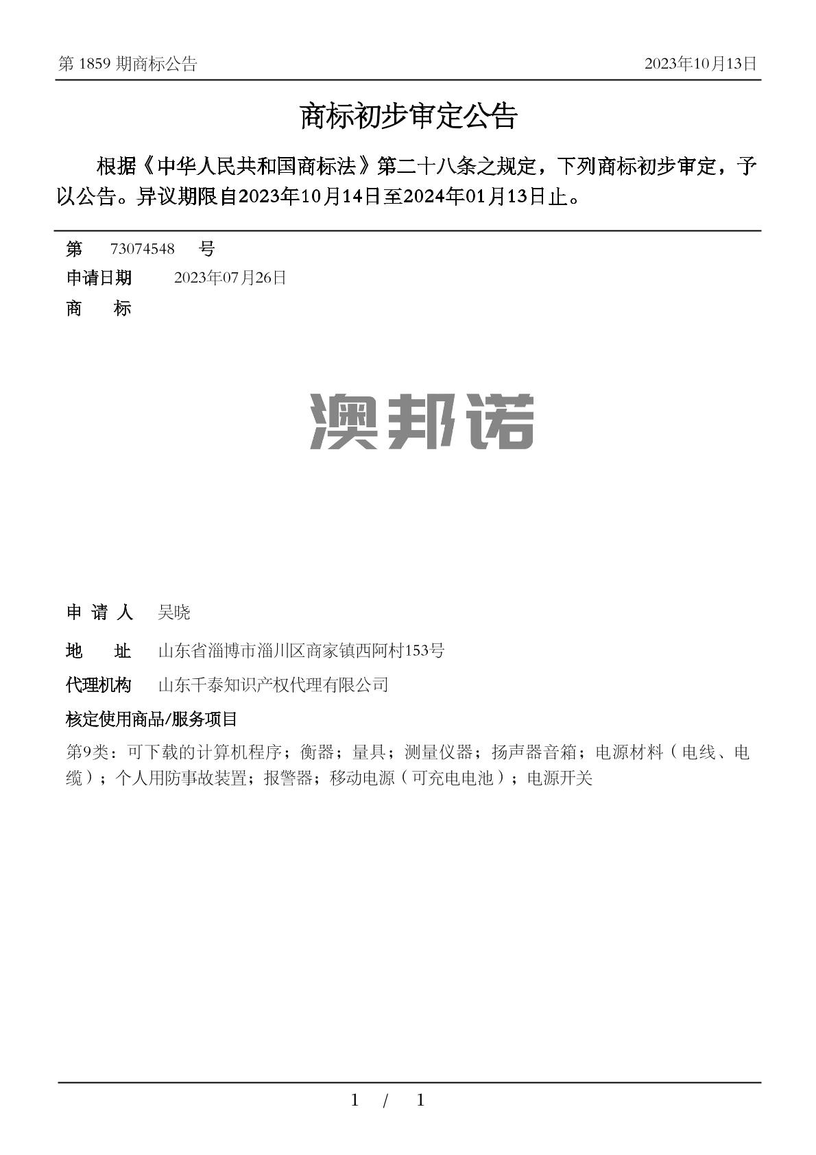 异议期限: